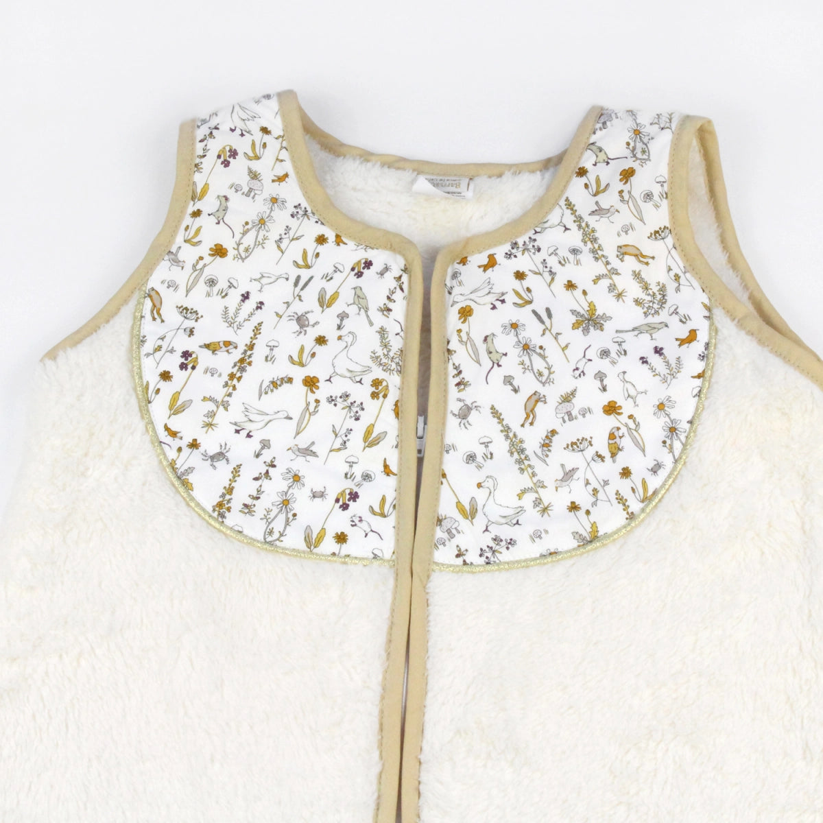 Très belle gigoteuse en laine polaire ultra douce et moelleuse avec son plastron chic en tissu Liberty® gansé d'un passepoil or. Idéal pour un sommeil tout doux et en toute sécurité.