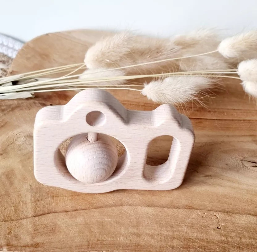 Hochet en bois appareil photo