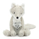 La peluche renard allie charme, douceur et responsabilité : un loup gris papa accompagné de son bébé, prêts pour mille câlins. Fabriquée avec soin en velours côtelé doux , cette peluche est d'une taille parfaite pour les petites mains et les bras de votre nouveau-né. Le rembourrage est en polyester recyclé, un détail qui fait sens lorsque l’on choisit d’accueillir un doudou respectueux de la planète.