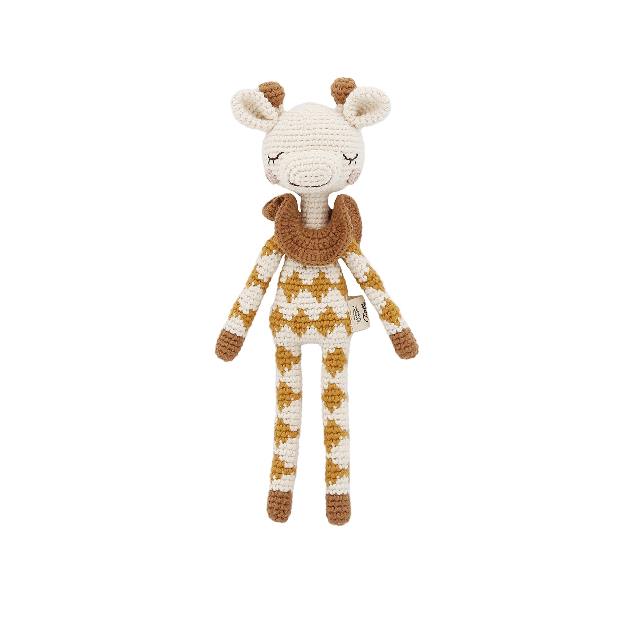 Sa texture crochetée à la main stimule la curiosité tactile des tout-petits et les accompagne dans leur éveil sensoriel. Douce et légère, elle est parfaite pour les premiers câlins et les jeux en toute sécurité. Chaque détail, de la collerette marron aux petites joues roses, est pensé pour séduire autant les enfants que leurs parents.