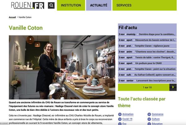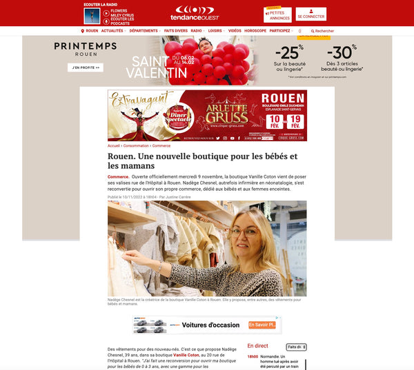 Ouverte officiellement mercredi 9 novembre, la boutique Vanille Coton vient de poser ses valises rue de l'Hôpital à Rouen. Nadège Chesnel, autrefois infirmière en néonatalogie, s'est reconvertie pour ouvrir son propre commerce, dédié aux bébés et aux femmes enceintes (...)
