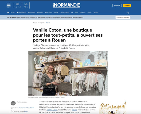 La boutique Vanille Coton a ouvert ses portes le 9 novembre 2022 à Rouen, et propose vêtements, accessoires et soins pour les enfants, de 0 à 3 ans, et pour les jeunes mamans.