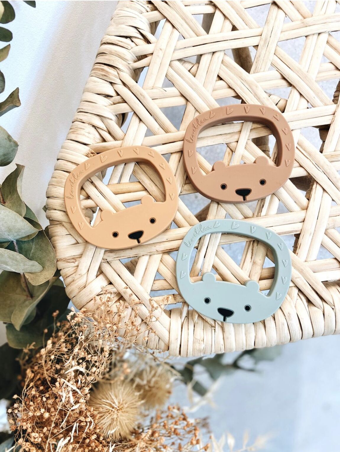 Joli hochet de dentition en silicone alimentaire. Ce hochet favorisera l'éveil et le bien être du bébé, il stimulera ses mouvements, sa coordination et sa dextérité. Le bébé pourra apaiser ses gencives irritées par les premières poussées dentaires.