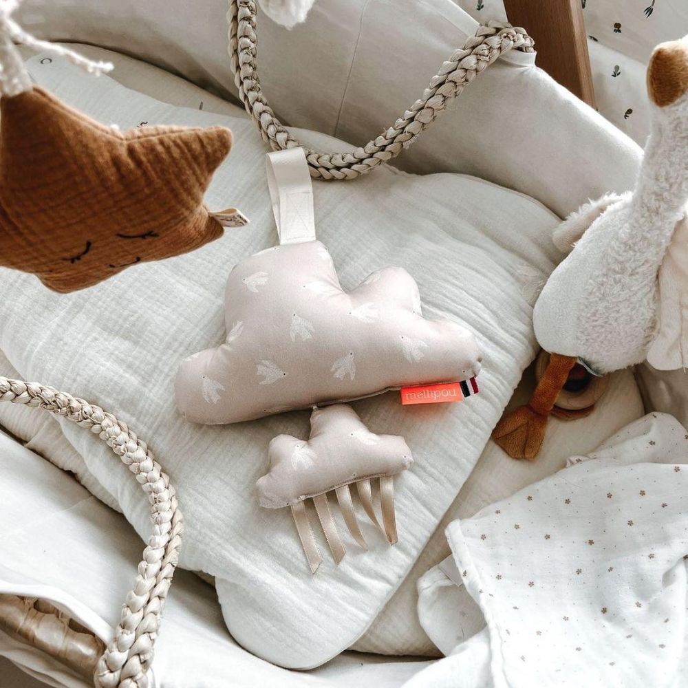 Choisissez cette jolie boîte-à-musique en forme de nuage fabriquée en France. Jouant une musique originale, elle est le cadeau de naissance idéal qui ravira bébé et leurs parents. Son imprimé tout doux se fondra parfaitement dans toutes les chambres de bébé. Idéal pour un cadeau de naissance quand on ne connaît pas les couleurs de la chambre de l'enfant. Pas de faute de style ni de goût. Mais ce qui rend ce nuage musical si exceptionnel c'est notre choix de berceuses, évidemment ! À vous de choisir maintenant celle qui vous plaira le plus ou dont vous êtes vous-même fan !