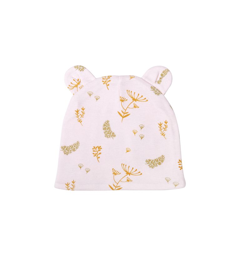 Ce joli bonnet à oreille accompagnera à merveille une petite tenue, et particulièrement le pyjama assorti.