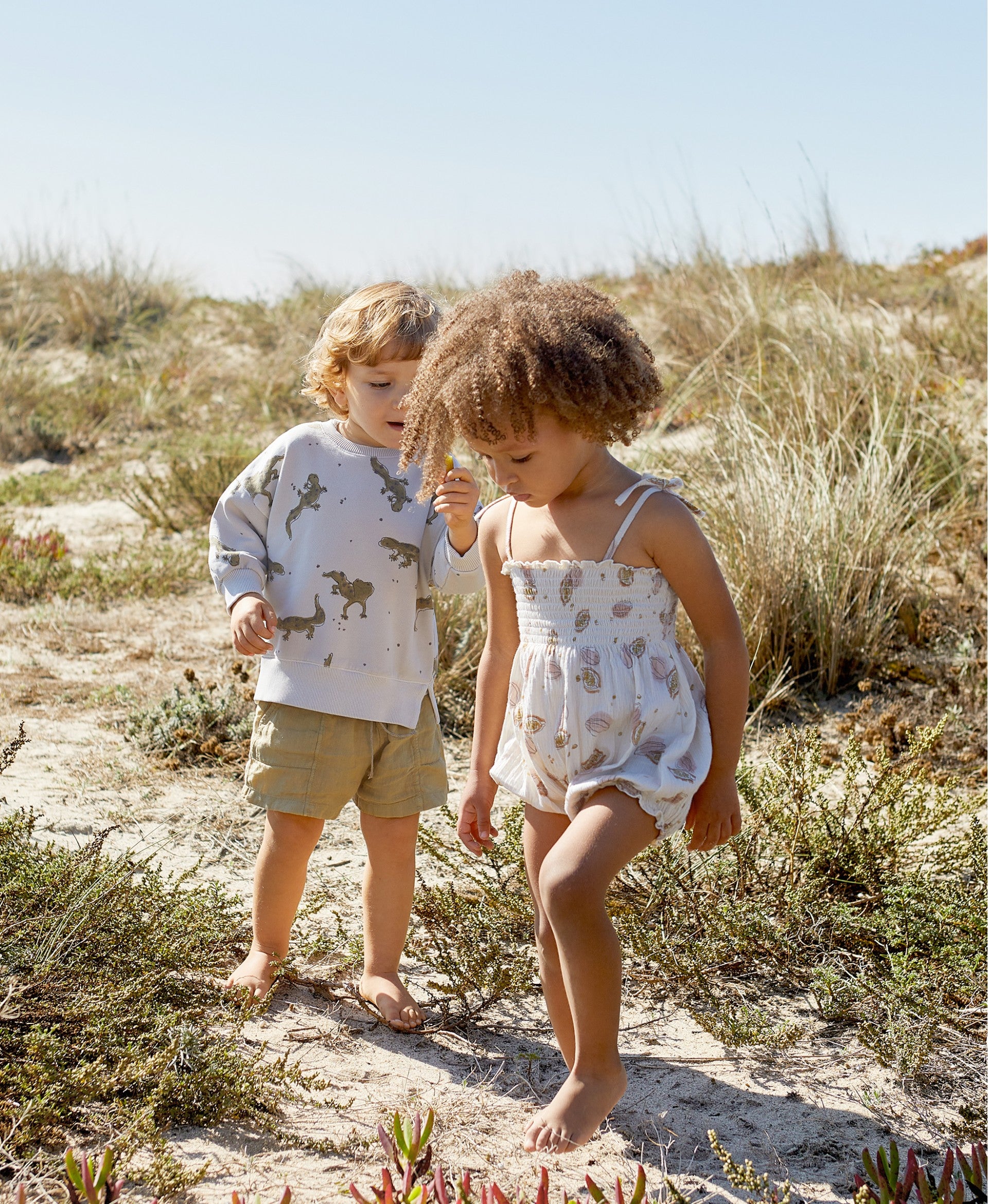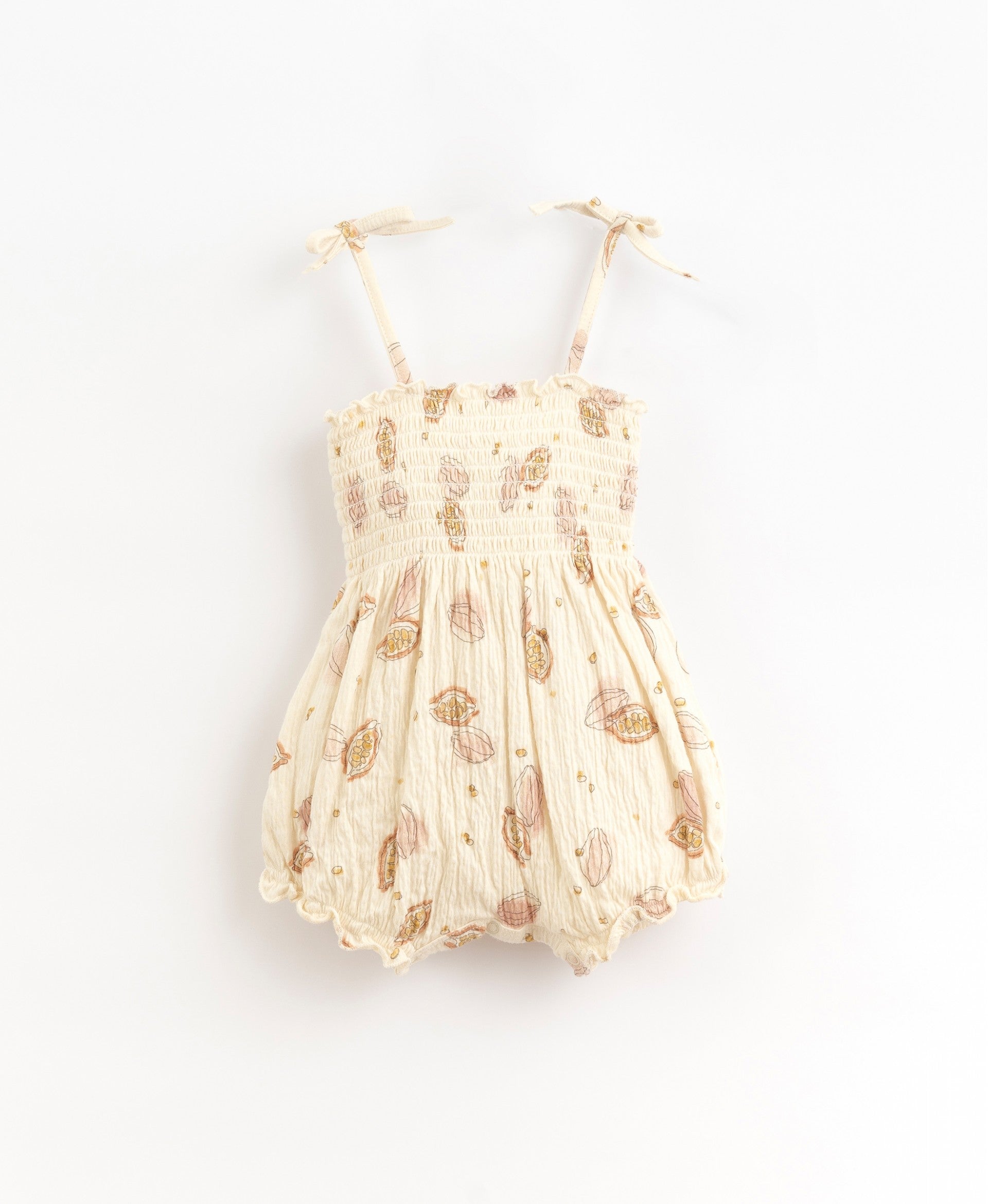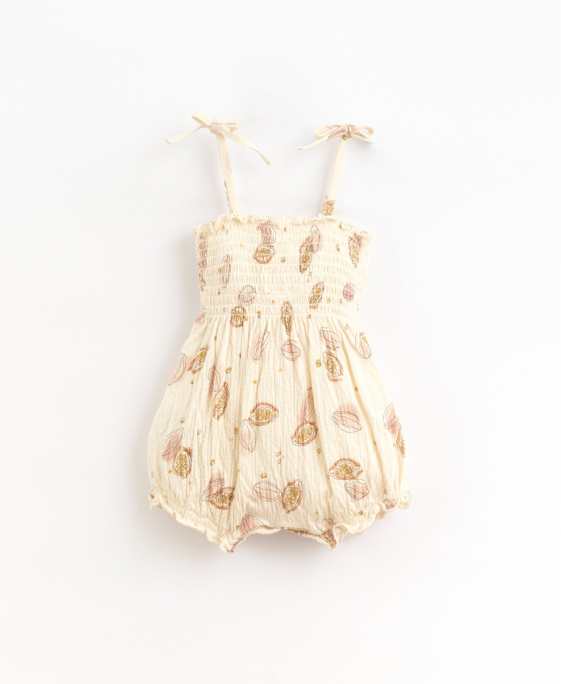 Vanille Coton vous présente cette combinaison so cute de la marque Play Up. Cette combi style "smock" est divisée en deux parties : l'une cintrée sur le haut et l'autre plus bouffante sur le bas. Son imprimé "Cacao" lui donne un aspect trés girly. Idéal pour les beaux jours grâce notamment à son ouverture pression à l'entrejambe (jusqu'à 18 mois). Chez Vanille Coton, on est fan de cette combinaison petite fille. Et vous aussi, vous craquerez !