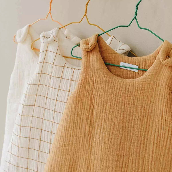 La Gigoteuse gaze de coton rayures beige TOG 2 de la marque Cocoeko est pensée pour offrir à bébé une chaleur douce et apaisée dans une chambre entre 18 °C et 22 °C.