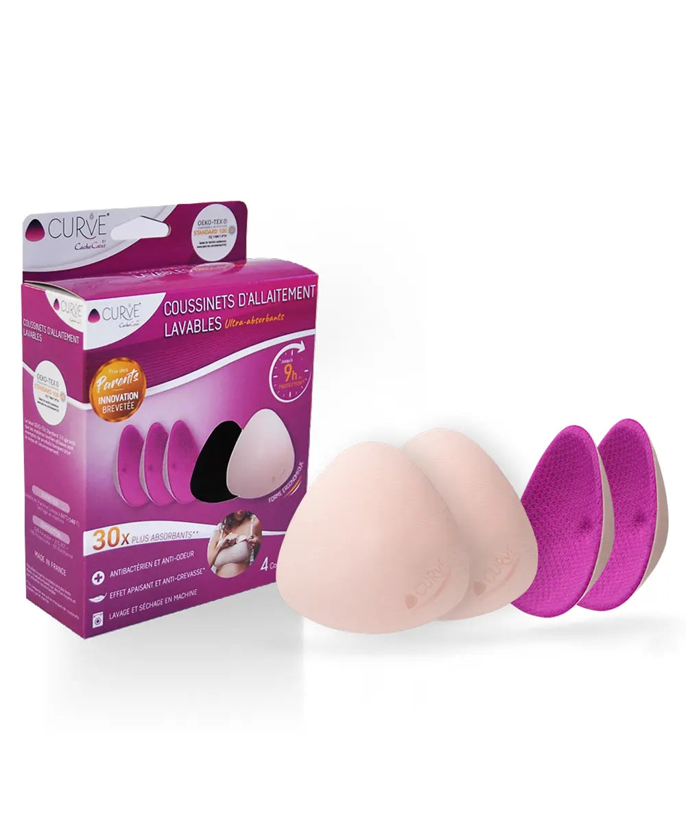 Nos coussinets d'allaitement assurent au quotidien un maximum de fraicheur, ils sont antibactériens et antiodeurs. De fabrication Française, nos coussinets d'allaitement Curve vous accompagneront tout au long de ce moment mémorable qu'est l'allaitement maternel.