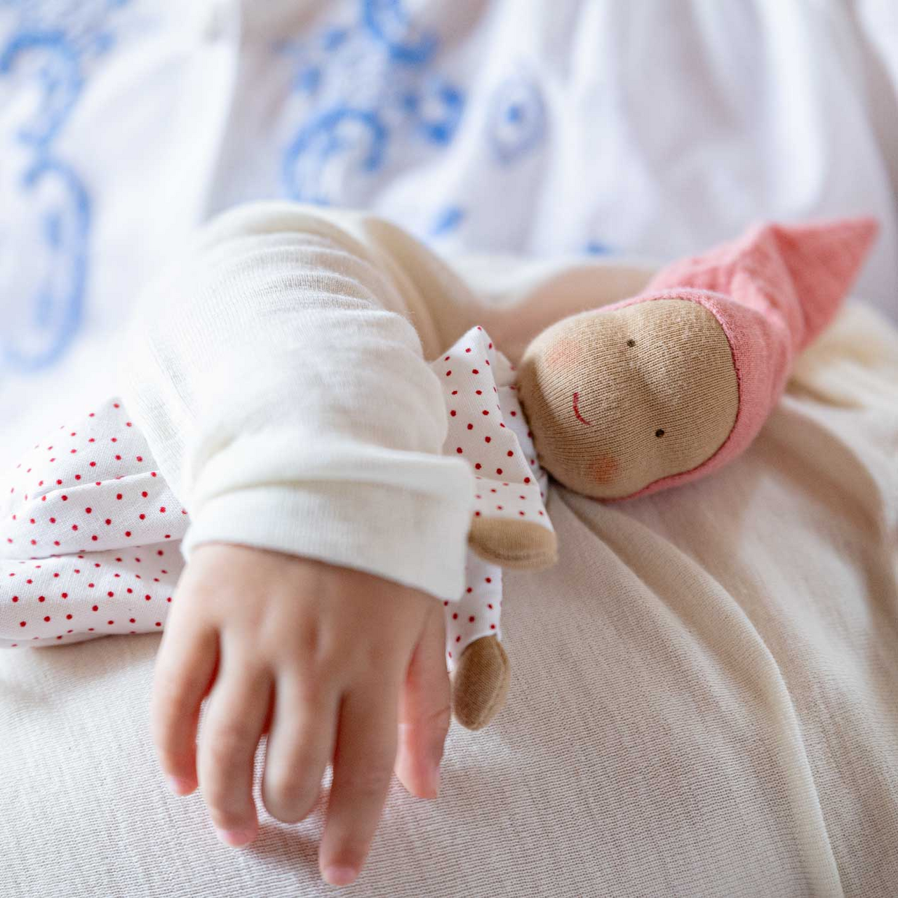 Une petite poupée douce comme un doudou, pensée pour accompagner les tout-petits avec tendresse dès les premiers câlins.