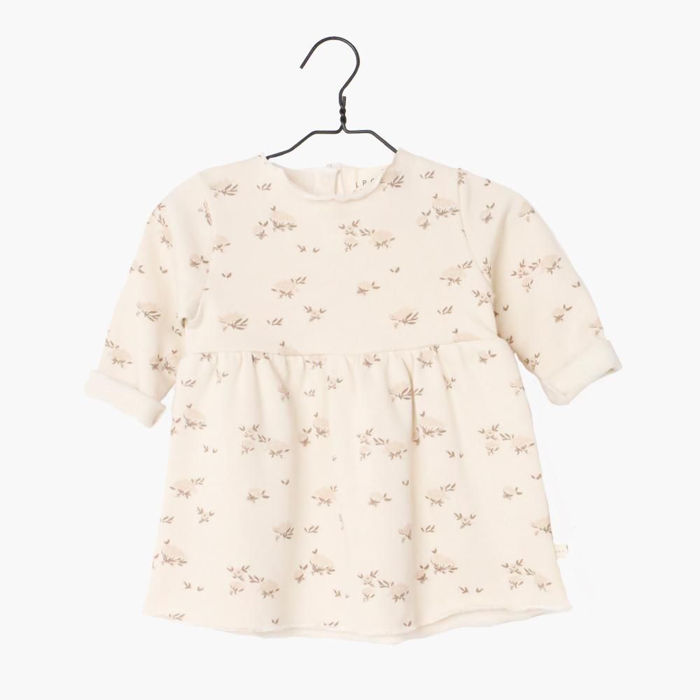 ROBYN de la marque Les Petites Choses est une robe à manches longues, froncée à la taille, boutonnée dans le dos pour petite fille et bébé. Sa matière très douce est en molleton gratté 100% coton, certifié Oeko-Tex®, qui garantit beaucoup de douceur et de confort. Le molleton gratté a été imprimé avec notre motif exclusif “Blossom Gold”.